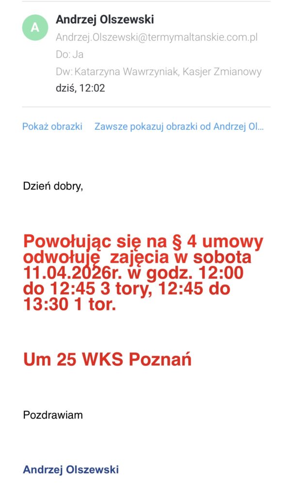 W najbliższą sobotę 11.04.2026r. zajecia WKS zostają odwołane.